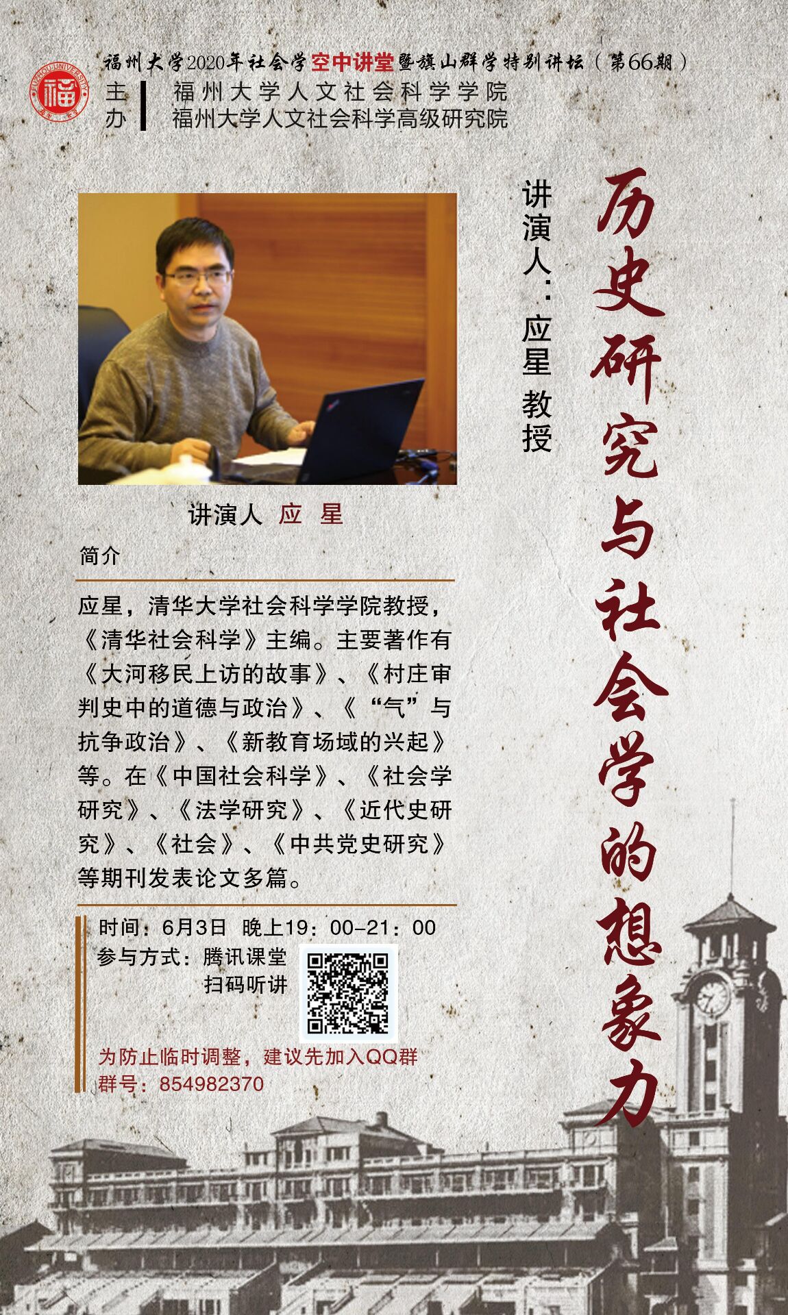 演講人簡介:應星,中國社會科學院社會學博士,清華大學政治學系教授、博士生導師,福州大學人文社會科學高級研究院講座教授。中國社會學會理事,并在《思想與社會》、《社會》、《開放時代》、《法哲學與法社會學論叢》、《中國鄉村研究》等學術期刊任編委。專著《大河移民上訪的故事》《村莊審判史中的道德與政治》《“氣”與抗爭政治》。