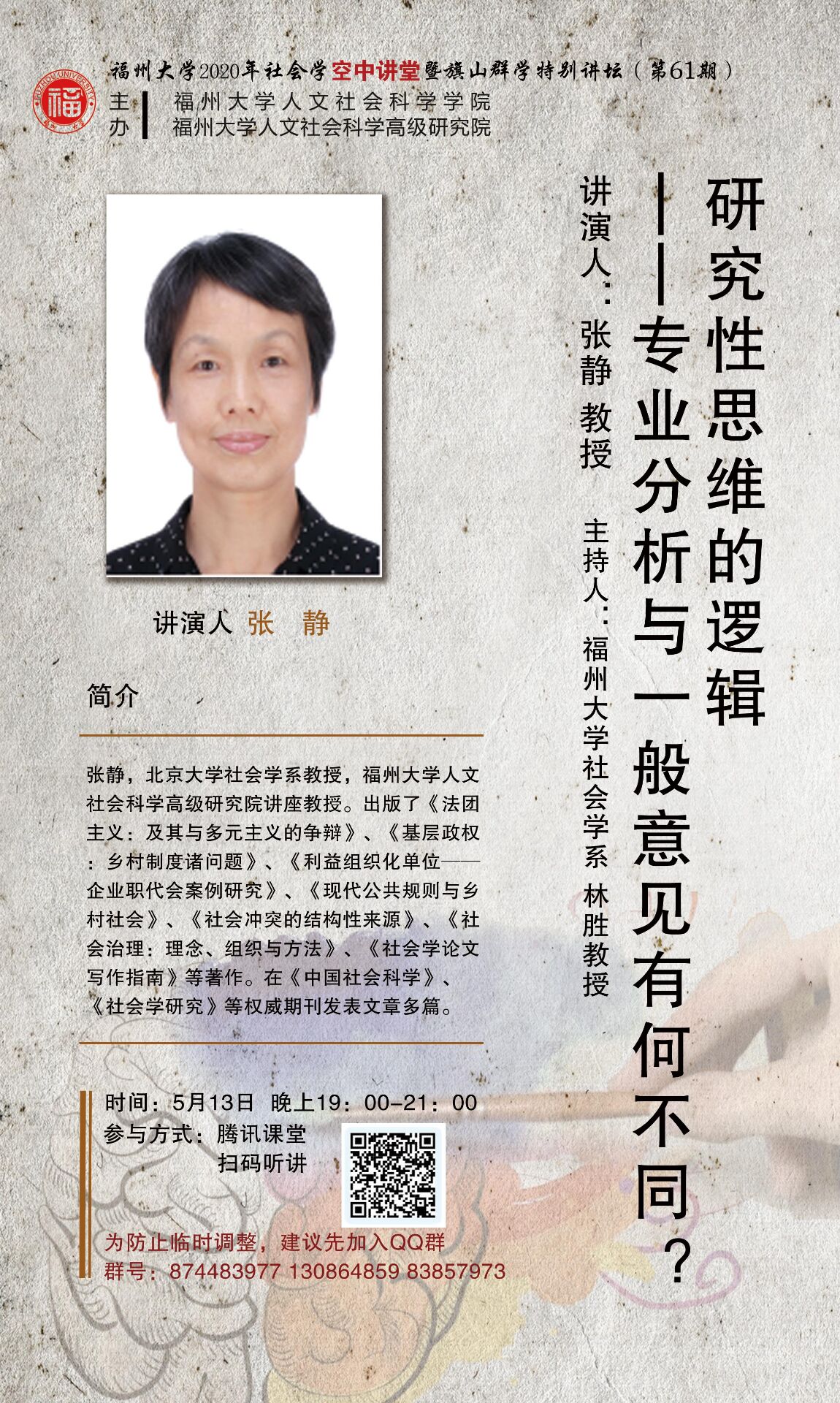 演講人簡介:張靜,北京大學(xué)社會學(xué)系教授,福州大學(xué)人文社會科學(xué)高級研究院講座教授。出版了《法團(tuán)主義:及其與多元主義的爭辯》、《基層政權(quán):鄉(xiāng)村制度諸問題》、《利益組織化單位──企業(yè)職代會案例研究》、《現(xiàn)代公共規(guī)則與鄉(xiāng)村社會》、《社會沖突的結(jié)構(gòu)性來源》、《社會治理:理念、組織與方法》、《社會學(xué)論文寫作指南》等著作。在《中國社會科學(xué)》、《社會學(xué)研究》等權(quán)威期刊發(fā)表文章多篇。